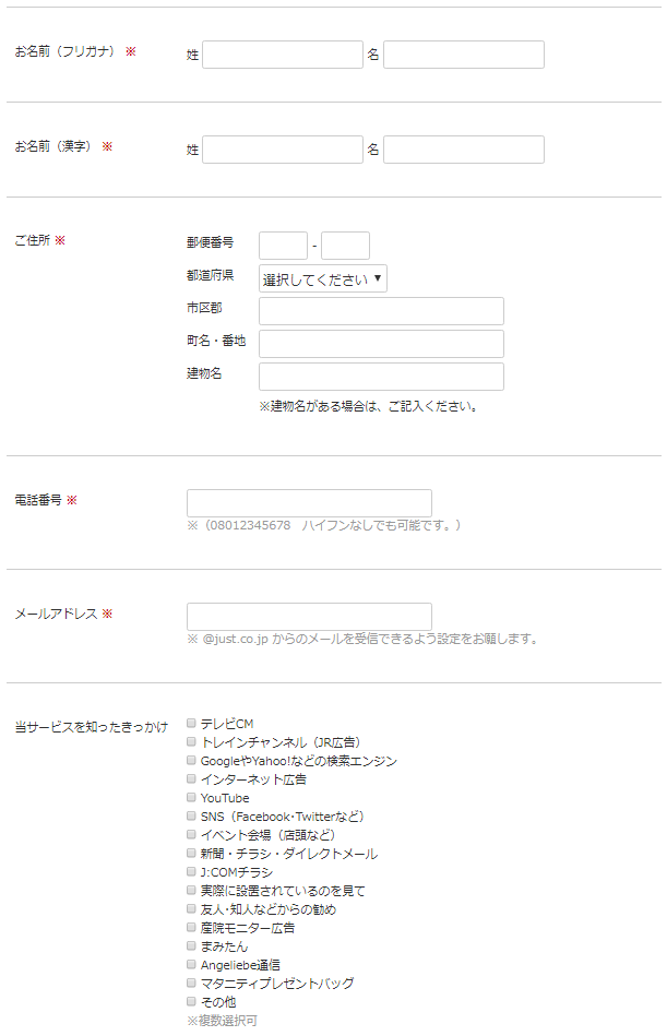 携帯のメールアドレスだと受け取れない事もあるので、「@just.co.jp」からのメールを受け取れるように受信設定を忘れないようにしておきましょう。